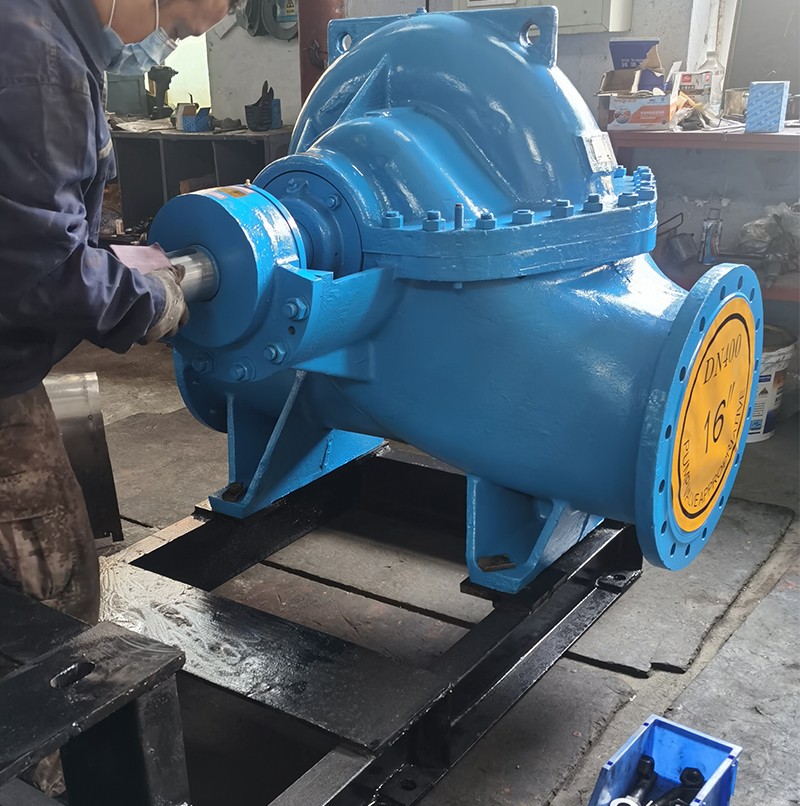結構設計:單 級雙(shuāng)吸軸向中開蝸殼(ke)離心泵,卧式安裝(zhuāng).驅動機(電動機或(huo)内燃機)可根據需(xu)要設置在泵的左(zuo)側或右側(即面向(xiàng)出口,驅動機在左(zuǒ)側為逆時針旋轉(zhuǎn).在右側為順時針(zhēn)旋轉)。